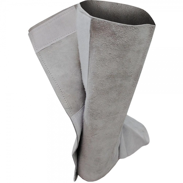 Perneira de segurança, confeccionada em raspa de couro bovino curtido ao cromo, com fechamento lateral total em velcro, com tira de raspa na parte inferior fechada com velcro.