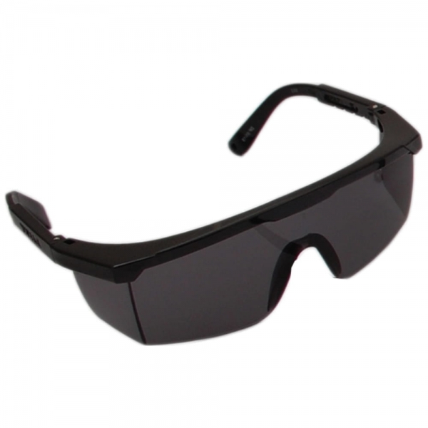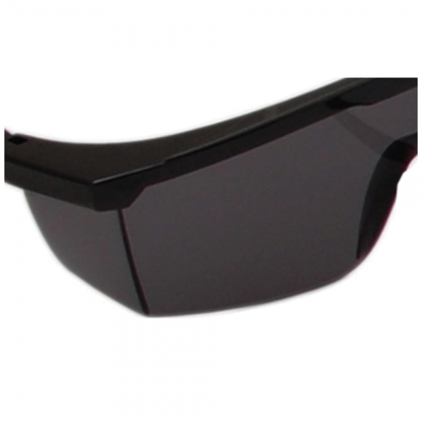 Óculos de segurança confeccionado em policarbonato óptico, com armação de nylon e hastes com comprimento regulável. Filtra 99,9% dos raios UVA e UVB.